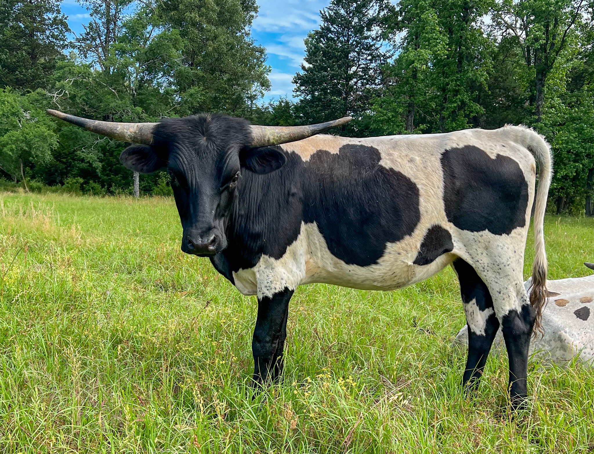 Beautiful heifer out of our largest framed, tallest cow. Showing early signs of twisty horns with a good base. Exposed to Bux Appaloosa for a Spring 2026 calf.